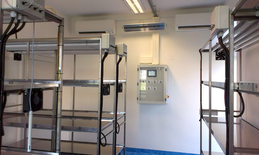 Oferujemy wykonanie komór fitotronowych, jarowizacyjnych oraz pokoi wzrostowych jako nowe obiekty badawcze oraz modernizację istniejących. Kompleksowość realizacji zadania obejmuje swoim zakresem prace budowalne, dobór i montaż urządzeń chłodniczych, grzewczych i wentylacyjnych oraz wielofunkcyjne wyposażenie. Tworzone przez nas komory, dla zapewniania sterowania, pomiaru oraz archiwizacji zadanych parametrów, wyposażamy w spersonalizowane, autorskie oprogramowanie. Sterowanie oraz pomiar temperatury, wilgotności, zawartości CO2, O2 oraz innych parametrów odbywa się poprzez system czujników i skanerów zintegrowanych z komputerem centralnym. Obsługa komory dokonywana jest z wykorzystaniem ekranu dotykowego, komputera PC lub zdalnie z urządzeń mobilnych. W zależności od przedmiotu prowadzonych badań istnieje możliwość doboru systemu doświetlania w odniesieniu do rodzaju światła i jego mocy.